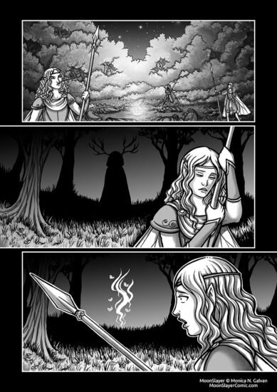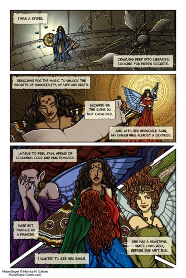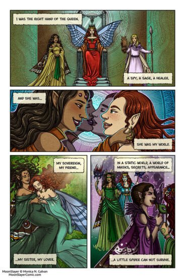 This page has a replica in ink of the digital lineart (and colors) I did for the Spider and the Thorn mini story. (Remember that it’s free right now! Go and download it!) I really light how it turned out and the differences with the “original” one. This is the point where the ministory starts!! 😀