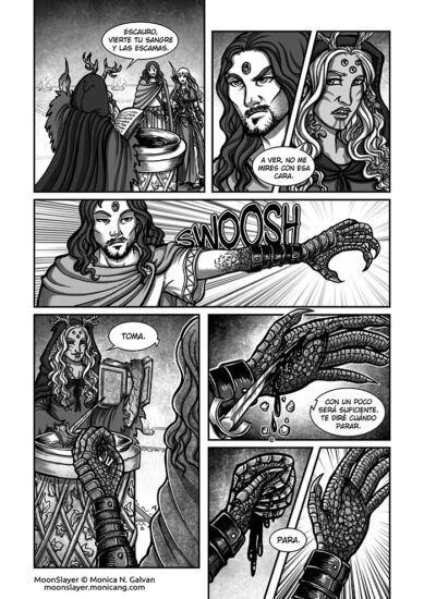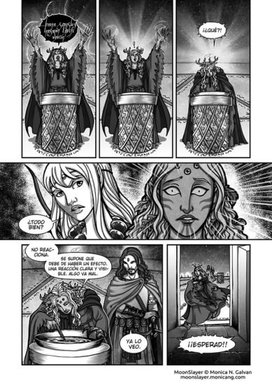 ¿Por qué falló la poción? ¿Por qué Alheña ha puesto esa cara de muerta? ¡Lo veremos en la próxima página de MoonSlayer!